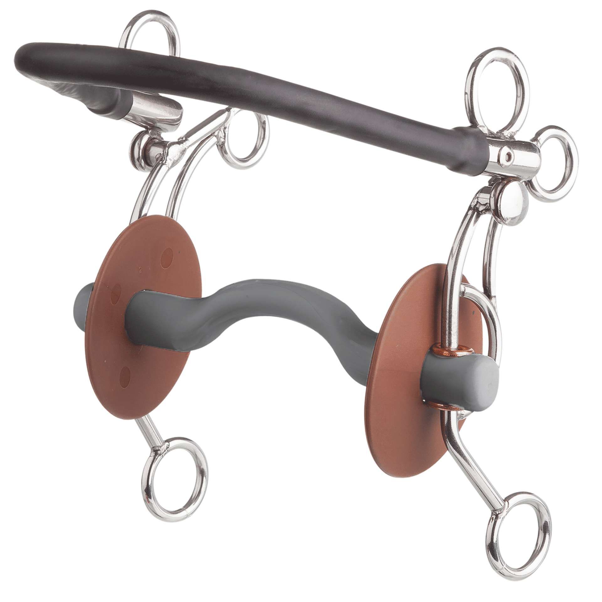 The tongue port bar has an especially flattened shape to the port. This gives the tongue optimum room. Many horses respond to this with improved suppleness and increased chewing. This bit is also very well suited to horses that play with their tongues, trying to get their tongue over the bit, as the port effectively prevents this. This mouthpiece is thus eminently suited to horses that do not tolerate traditionally shaped bits due to the pressure on the tongue and react by head-shaking or similar. The Tandem US is almost identical to the regular Tandem. With its understated black noseband, it is favoured for use at sales and demonstration events.