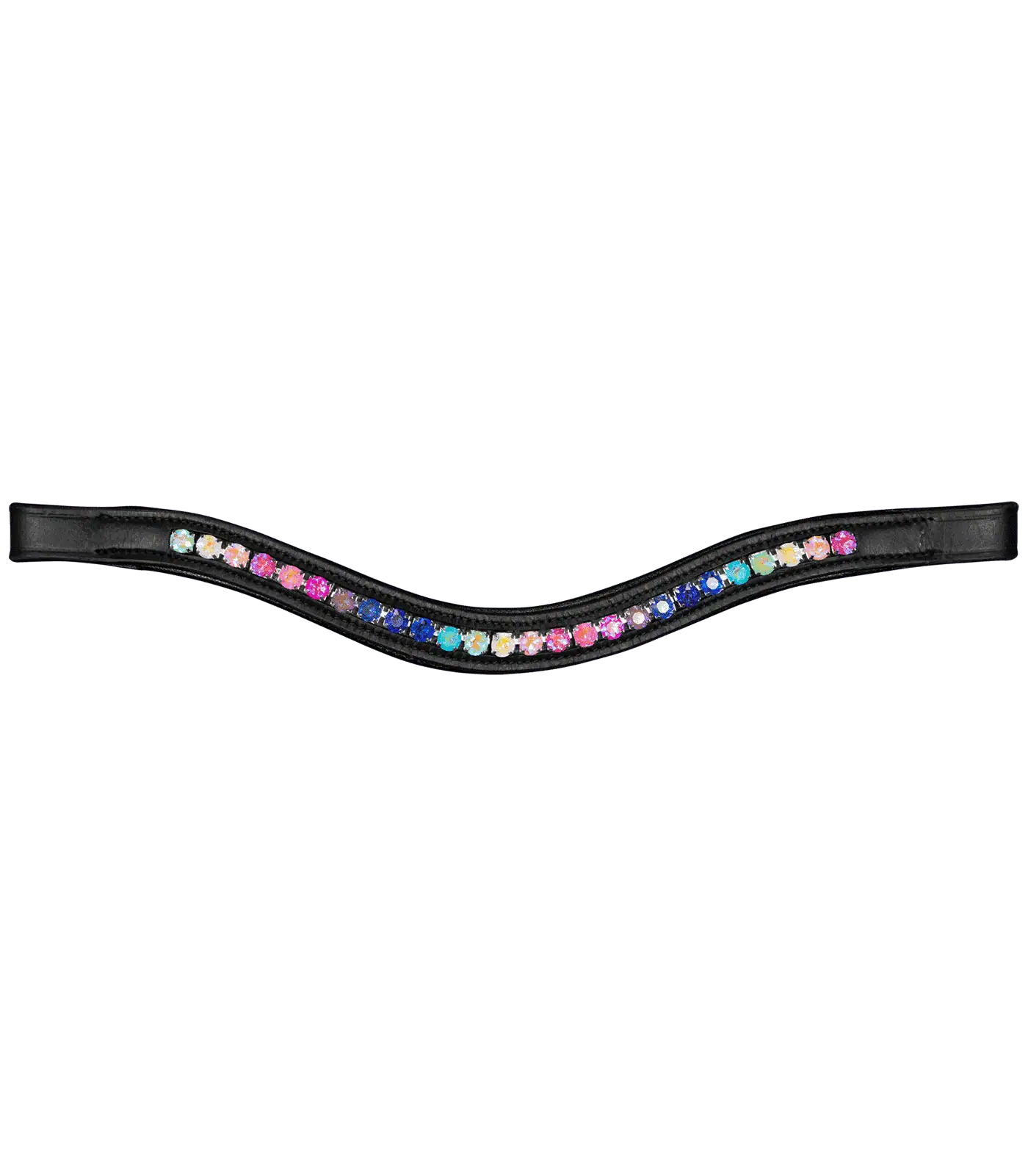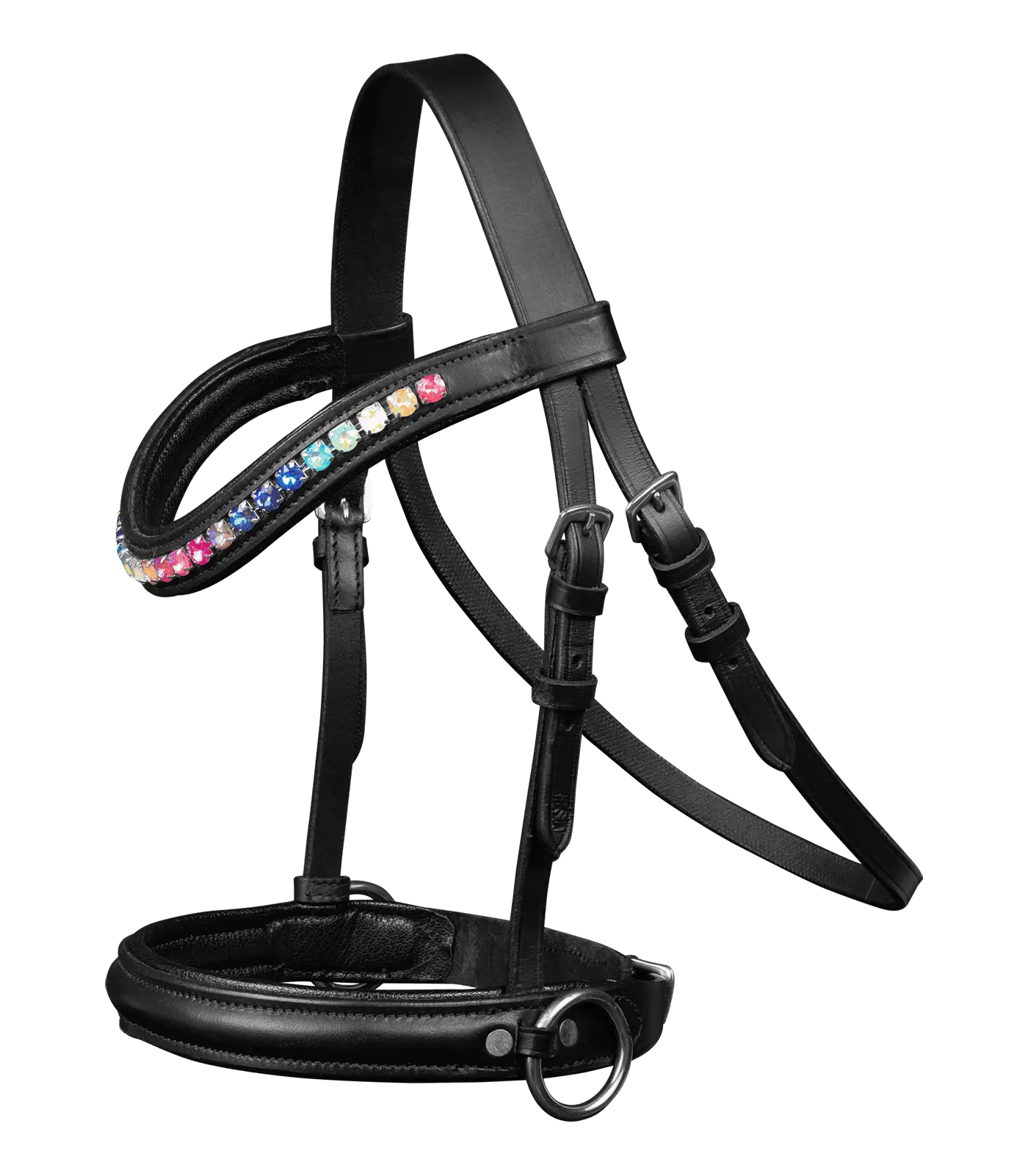 Decorative leather bridle for wooden horse with curved browband with colourful glitter stones. Supplied with reins.