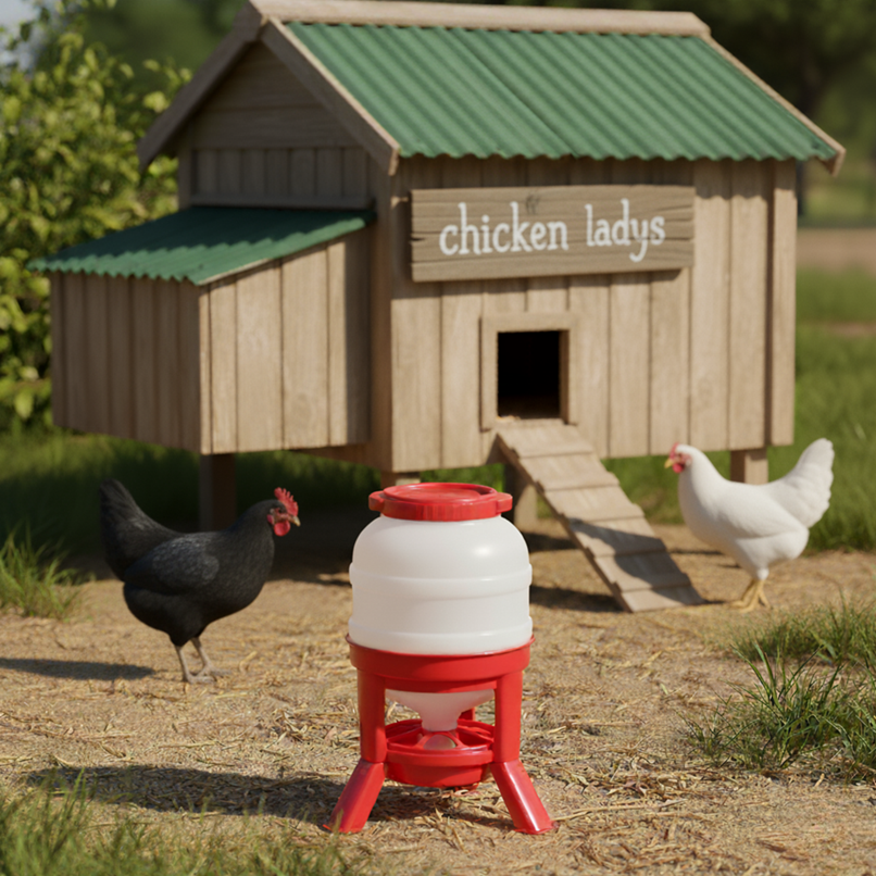The feeder is primarily suitable for chickens but can also be used for other poultry species.