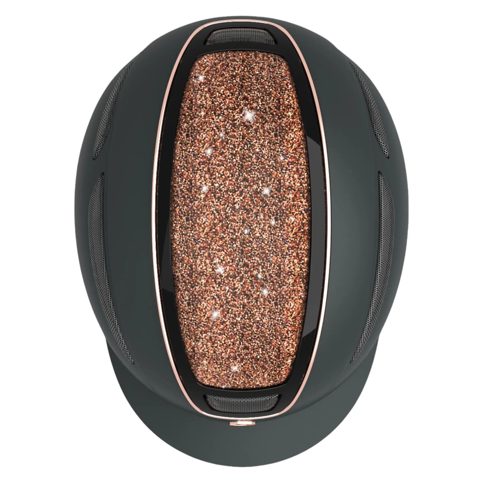 The Riding Helmet Elite combines elegant design with excellent functionality, ensuring that you ride not only safely but also stylishly. With its outstanding fit, it provides a comfortable wearing experience that lasts even during long rides. The soft and high-quality synthetic leather straps help keep the helmet securely in place and prevent slipping. Additionally, the disc system allows for one-handed, continuous adjustment of the headband to your head size – so the helmet always fits perfectly. Notably, the excellent ventilation system ensures an optimal climate under the helmet. Whether you're training or participating in a competition, you can fully concentrate on your performance. The softly padded inner lining is removable, making cleaning a breeze. The extra hard ABS helmet shell ensures the best possible protection. Tested according to the EN1384:2023 standard, the Riding Helmet Elite meets the highest safety standards, making it ideal for passionate riders. The Riding Helmet Elite is particularly suitable for riders who value safety and comfort without compromising on style. Whether you're an amateur or a professional, this helmet will accompany you on every ride.