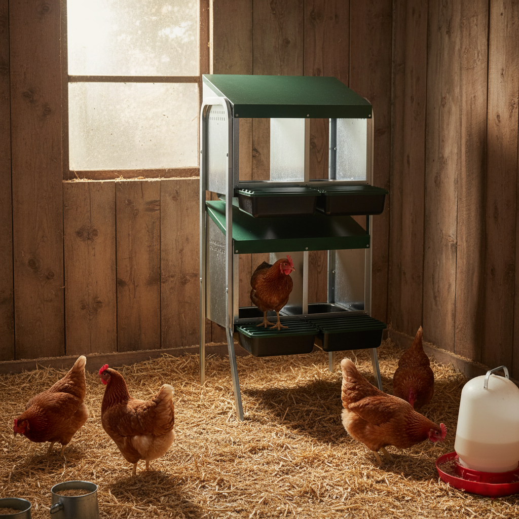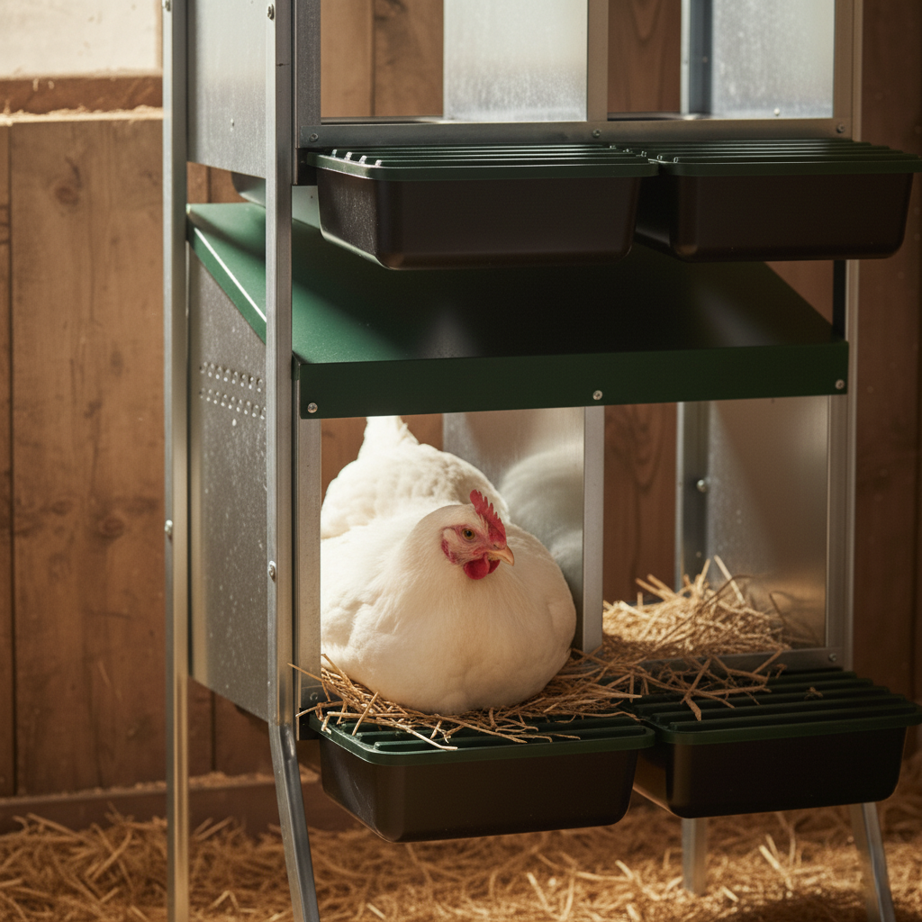 Using high-quality weather-resistant metal ensures that the stacked laying nest is not only durable but also easy to care for. This creates not just a practical but also a secure retreat for your hens. It is ideal for those who prioritize animal welfare and want to provide their animals with a comfortable environment.