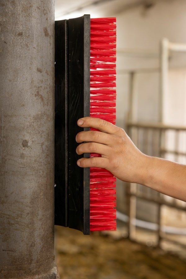 The flexible scratch brush allows for species-typical rubbing on the head and body sides, ensuring optimal coat care. Thanks to its 3-part construction, it can be mounted flexibly – whether flat against the wall or around corners and posts. With dimensions of 30 cm x 43 cm, it fits into any stable and is ideal for cattle, calves, horses, zebras, alpacas, and llamas. Made from high-quality polyamide, it offers durability and easy installation with the included mounting materials.