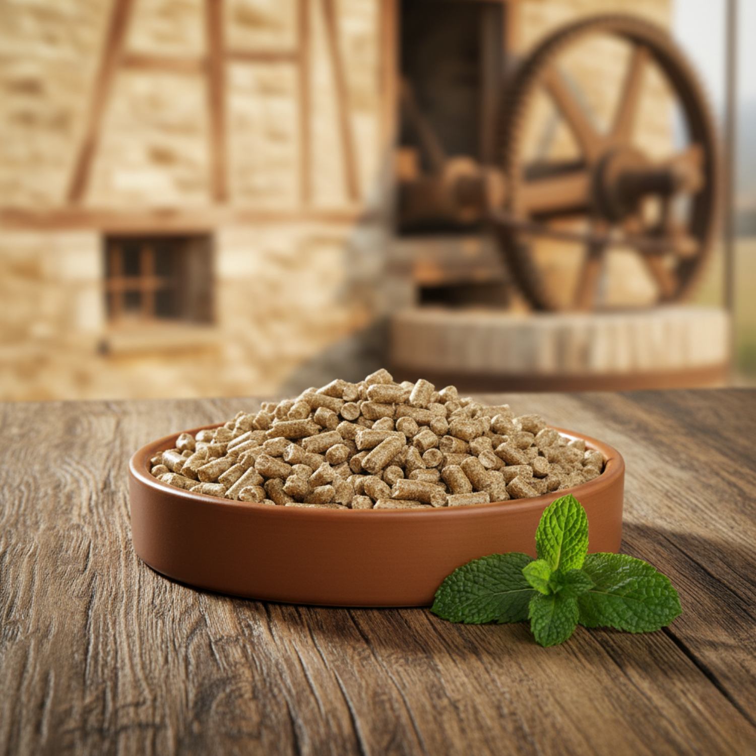 The basis of this feed is a selection of organically grown ingredients sourced from local organic farmers. This cooperation, which has grown over generations, not only ensures the outstanding quality of every grain but also the attention to detail and incomparable freshness that you receive with every bag.