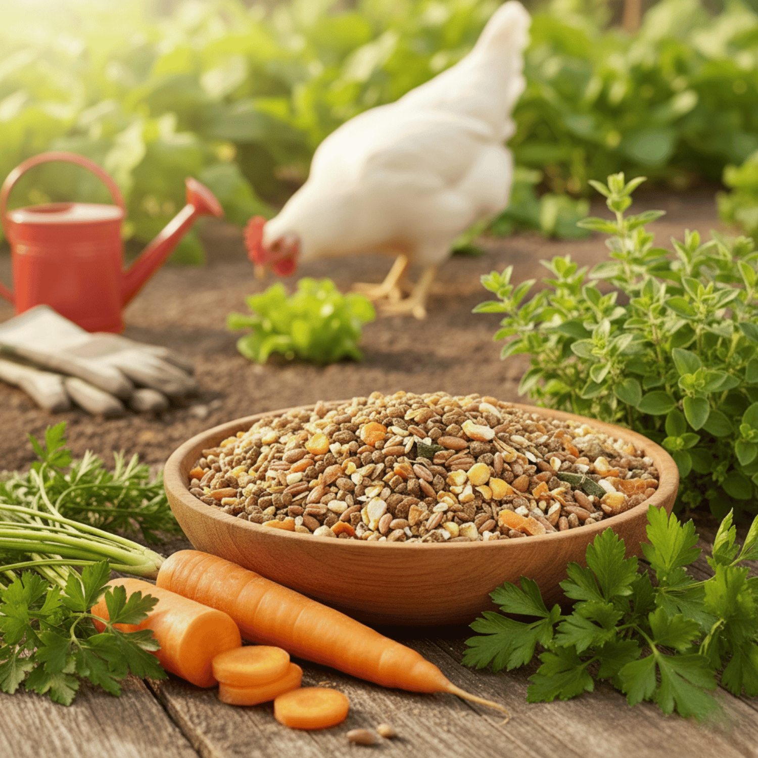 Imagine your hens picking fresh treats directly from a colorful vegetable garden. That's exactly the feeling in our Fitness Muesli! As soon as you open the bag, you will notice the exceptionally fresh and aromatic scent, which underlines the high quality of our selected, regional ingredients.