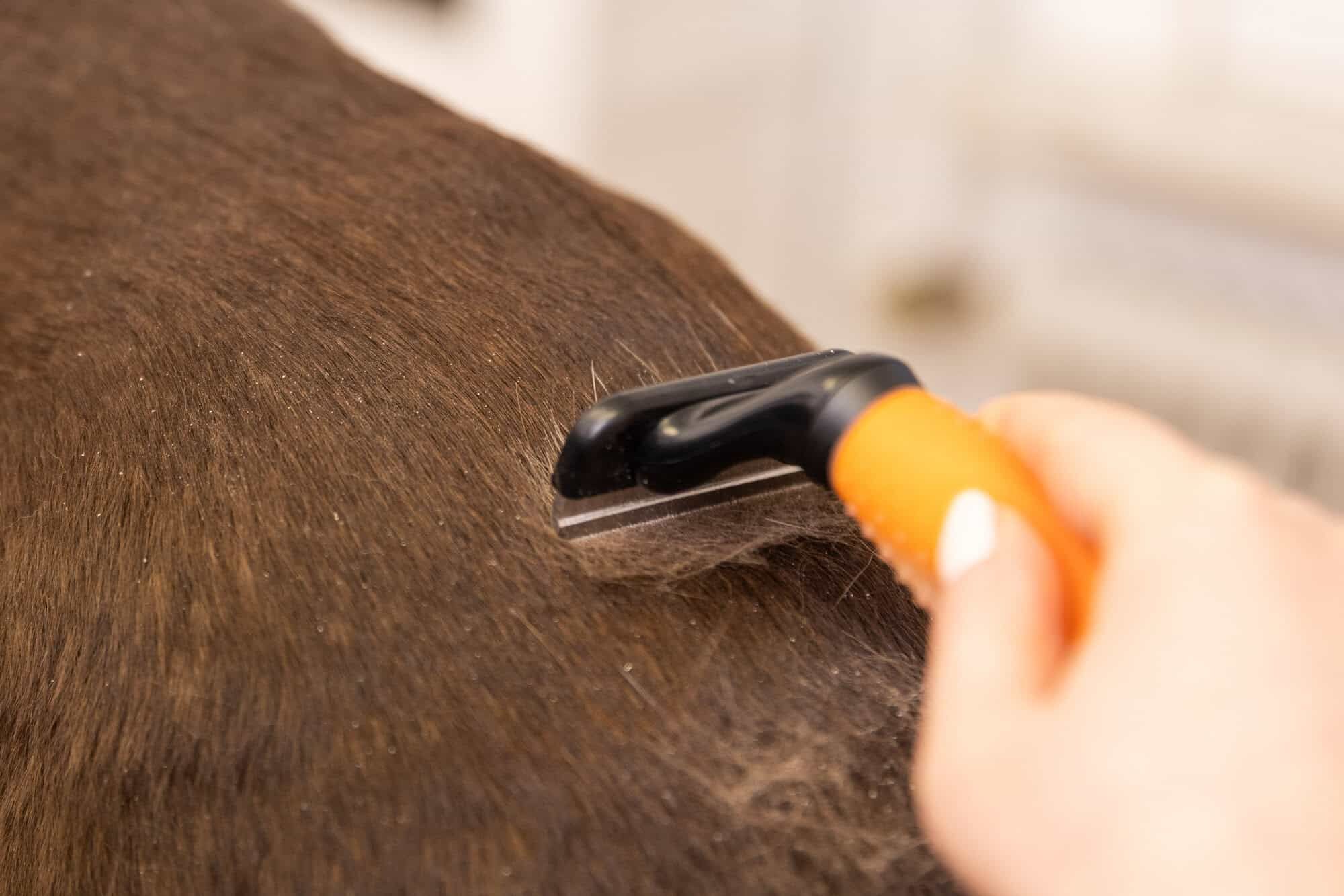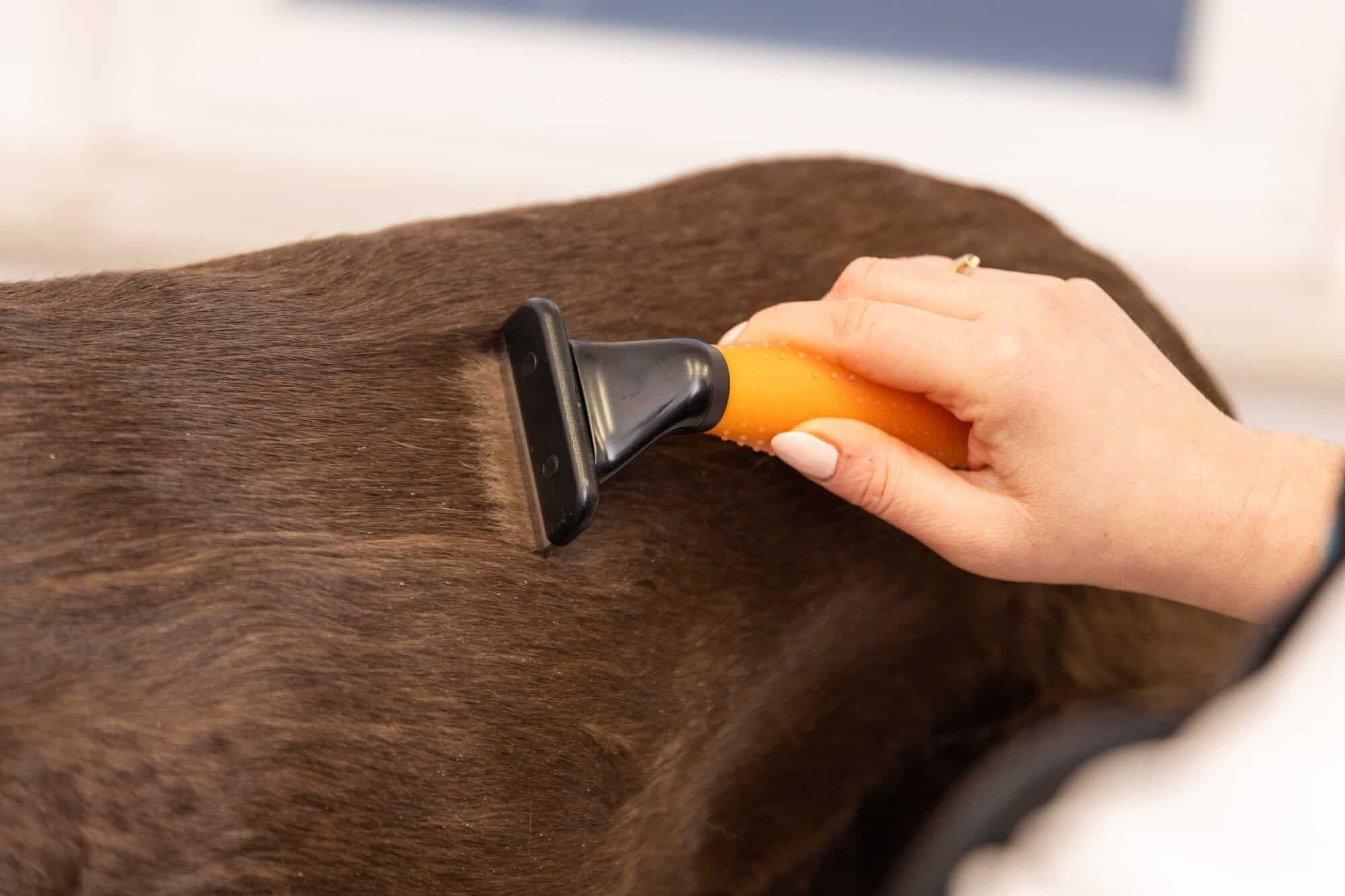 It is used to efficiently and gently remove loose undercoat and dead hair from the coat.