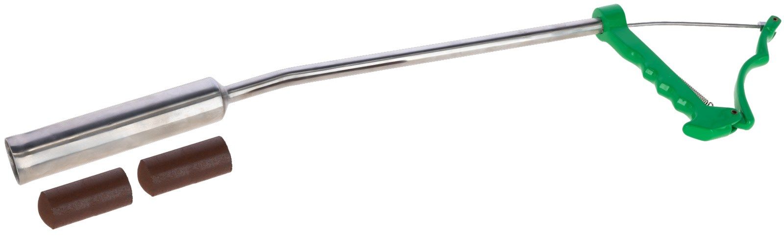 This applicator features a robust and durable stainless steel design that guarantees longevity, even with daily use on the farm. The sturdy, spring-loaded, and ergonomically shaped steel handle with an integrated return spring allows for effortless one-handed operation, so you can administer boli and cage magnets quickly and efficiently.