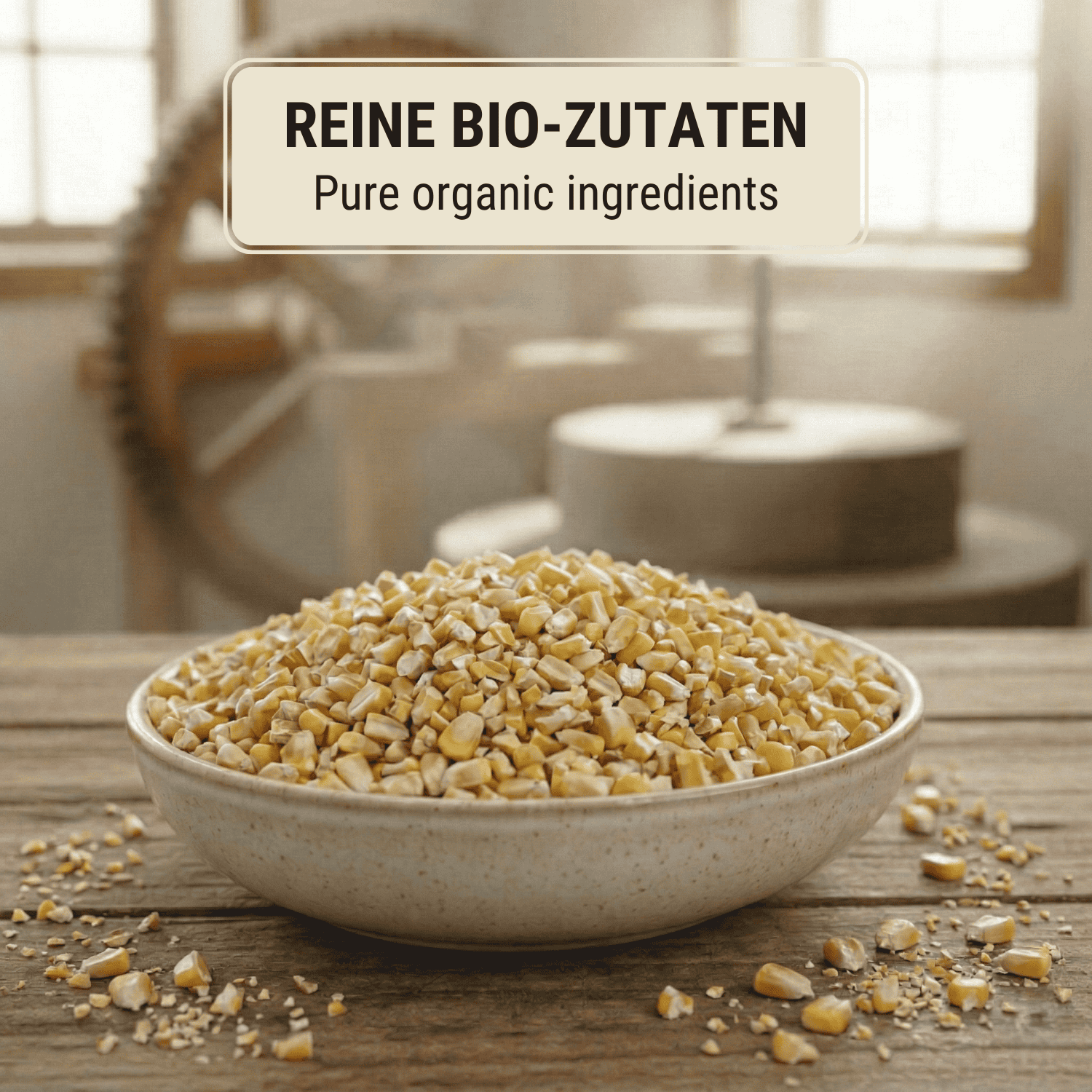 - 100% regional organic corn from Austria certified by Bio Austria