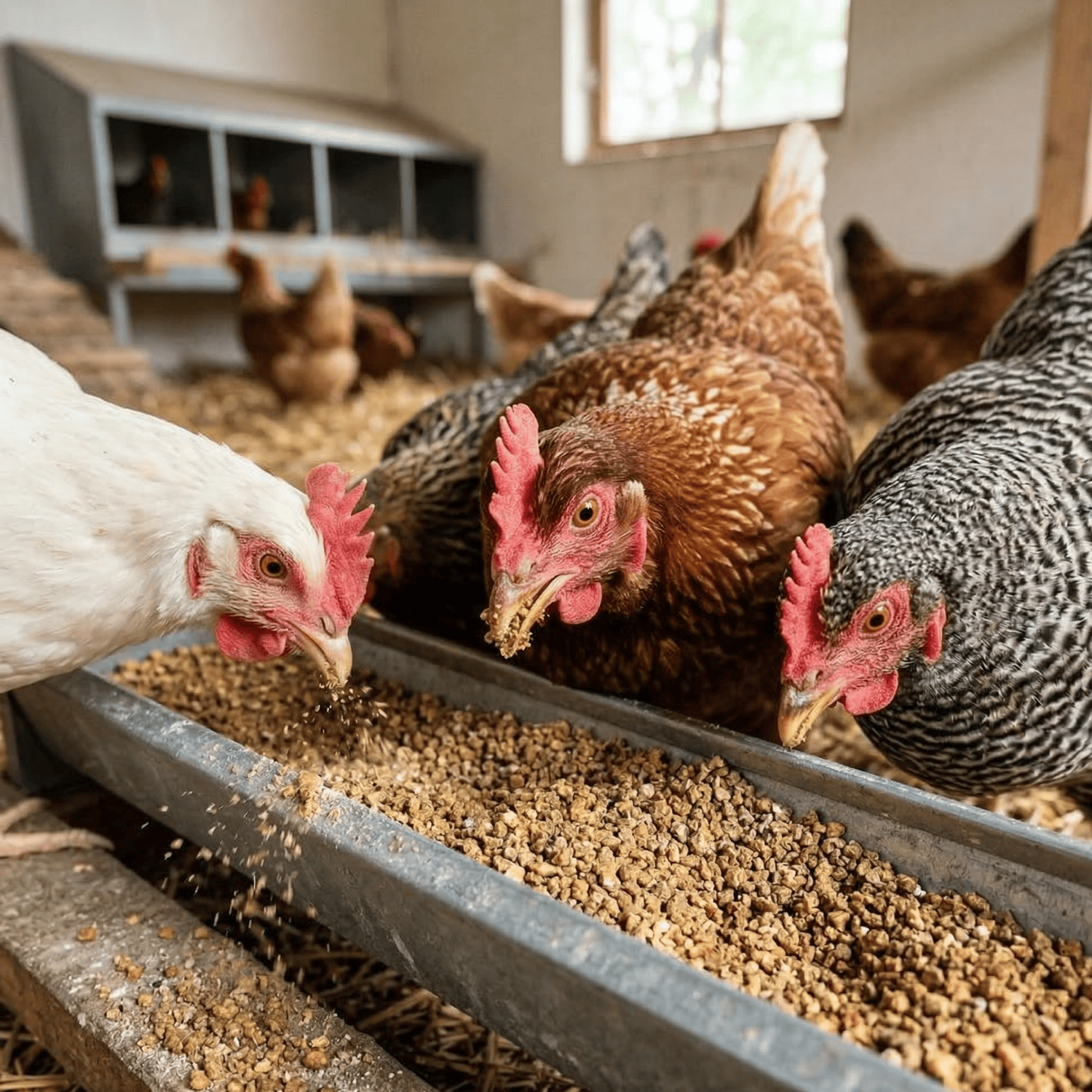 - High protein content (18%) to support laying performance.